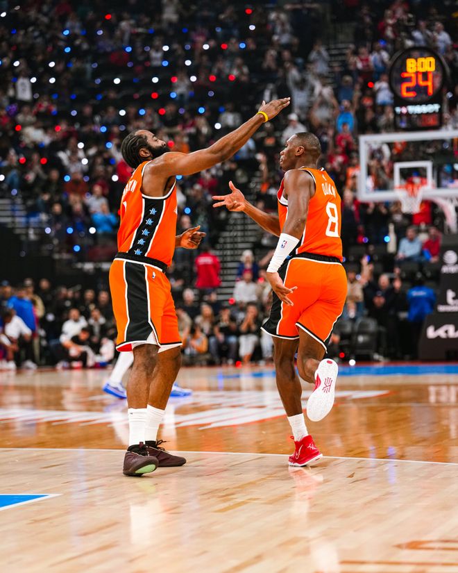 快船队首发阵容:哈登、邓恩、莱纳德、巴图姆、大洛