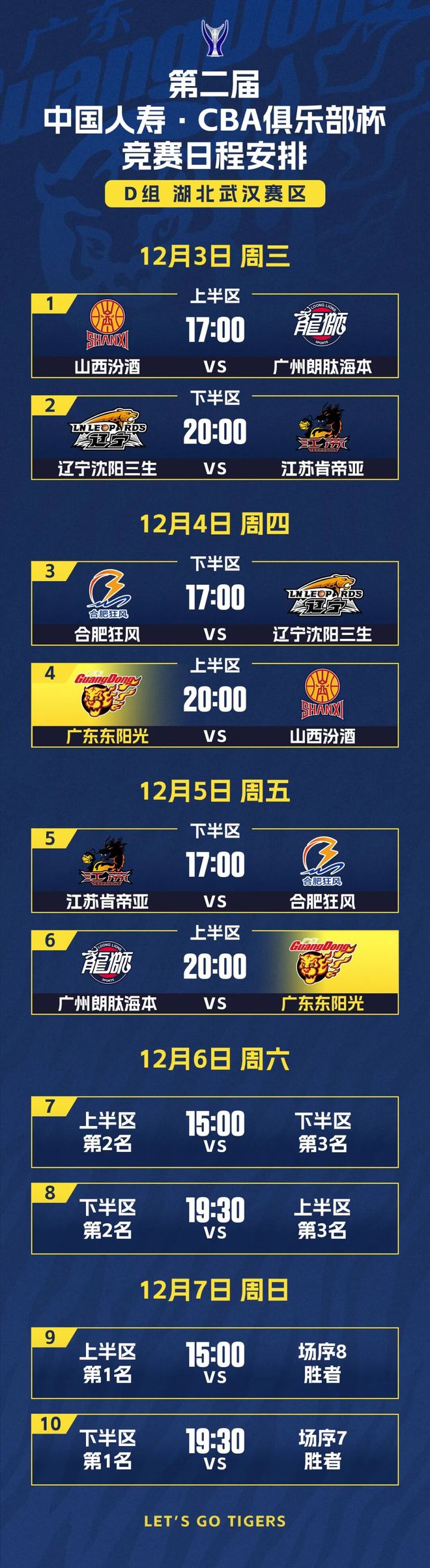 根据赛程安排,位于D组上半区的广东东阳光男篮,将在12月4日迎来首个对手山西汾酒男篮。强强对话,一触即发!以赛代练,以战促合!希望球队能够抓住这一磨合与演练阵容契机,通过比赛发现问题、解决问题,为新赛季积蓄能量!