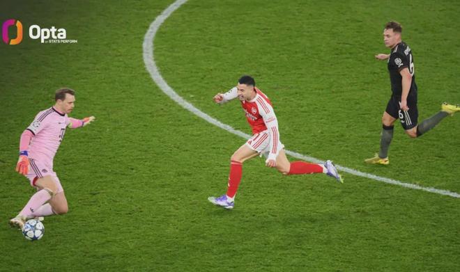 Opta统计,本赛季拜仁每场比赛都能进球2+,直到本场比赛遇到阿森纳,并且拜仁以下数据全部创造了本赛季最低:8脚射门,预期进球0.69,对方禁区内13次触球。