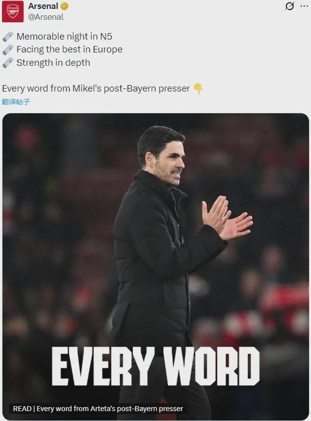 阿尔特塔出席了赛后新闻发布会,我们来看看阿森纳主帅的发言。